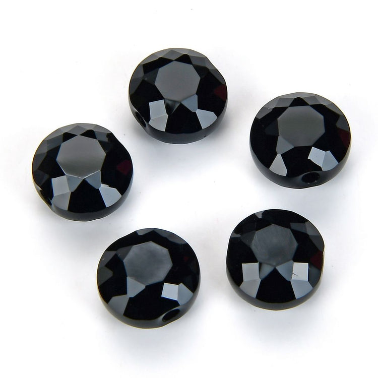 25pcs Adabele Austrian Faceted Flat Round Coin Crystal Beads #5052, Jet Black, 8mm, Hole ID 1mm, SSMR823