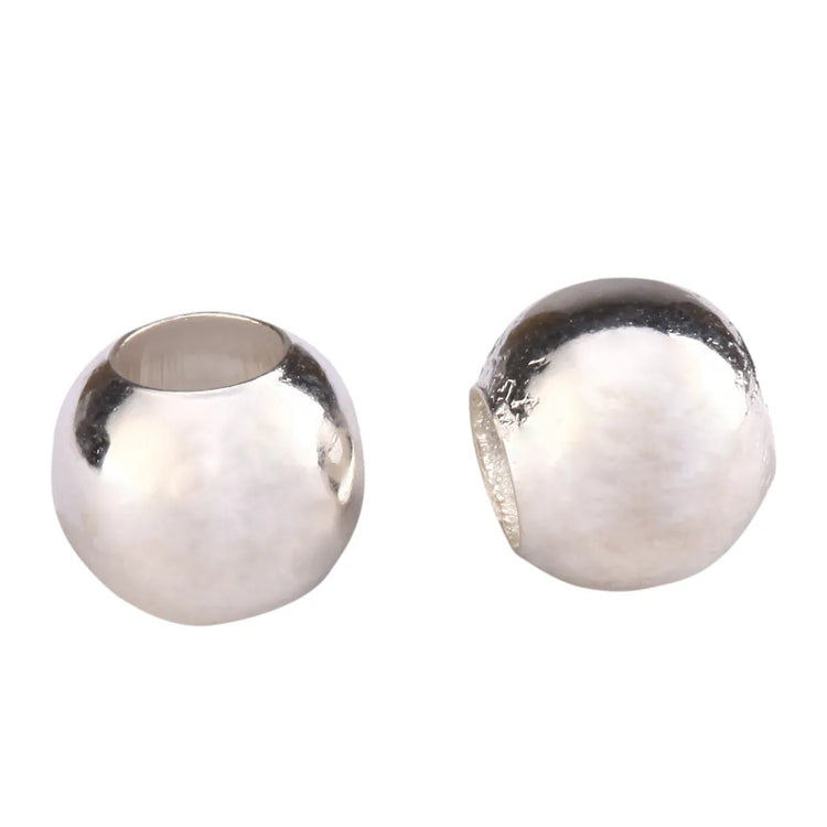 100pcs Large Hole Round Beads, Silver Plated, Size Selections: 4mm/6mm/8mm/10mm