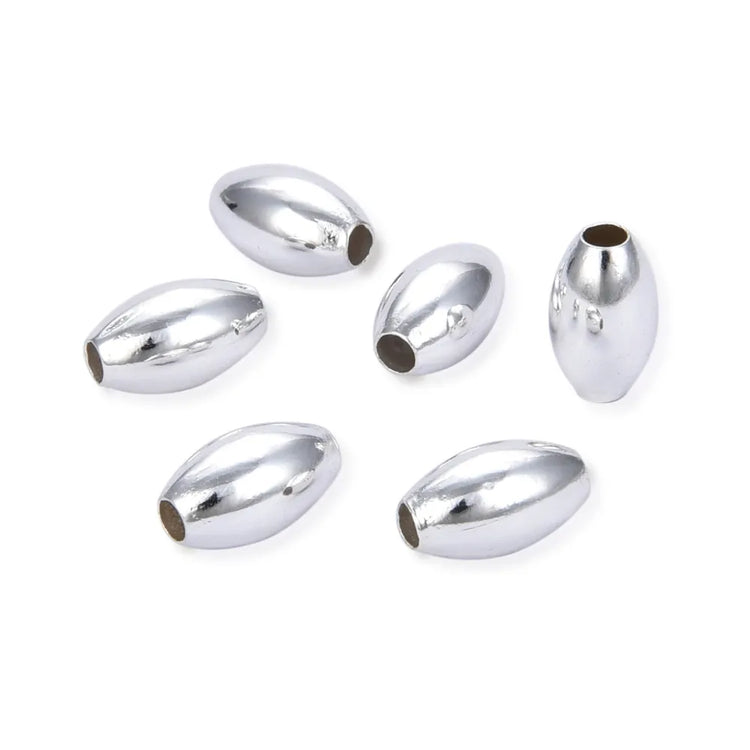 100pcs Smooth Oval Rice Beads, Sterling Silver Plated Brass, Size Selections: 7x4mm, 8x5mm, 10x6mm, 12x7mm