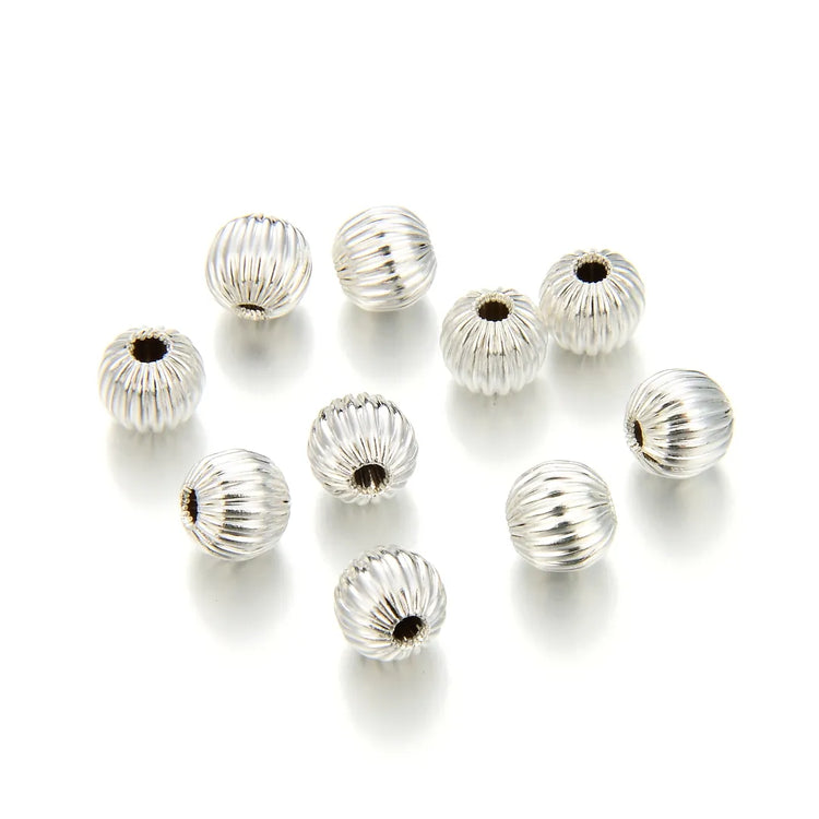 100pcs Sparkle Corrugated Melon Round Beads, Sterling Silver Plated Brass, Size Selections: 6mm/8mm/10mm