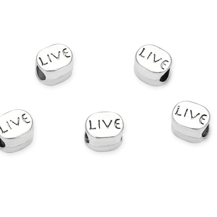 20pcs Live Love Large Hole Beads, Hole ID 4.5mm, Antique Silver, Zinc Alloy Metal, MEC-C13
