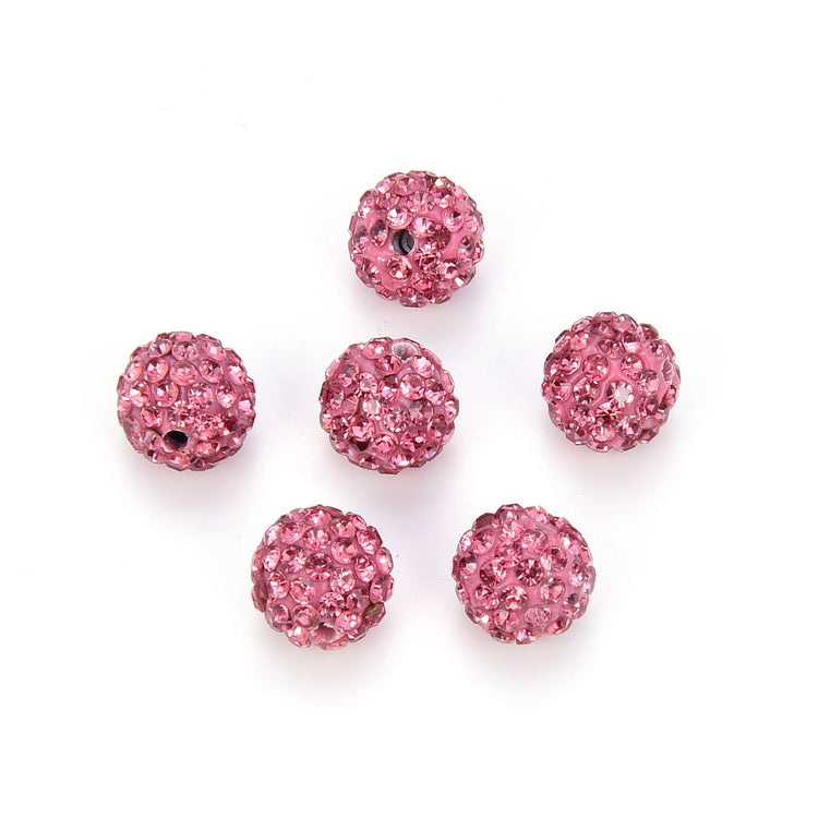 25pcs Adabele Grade AA+ Suncatcher Crystal Rhinestone Pave Polymer Clay Beads, Rose Pink, Size Selections: 8mm/10mm/12mm