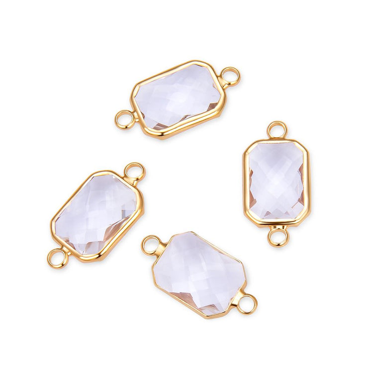 10pcs Grade A April Diamond Clear Birthstone Rectangle Radiant Cut Links, 18K Yellow Gold Plated Brass, 14mm, CCP12-G4