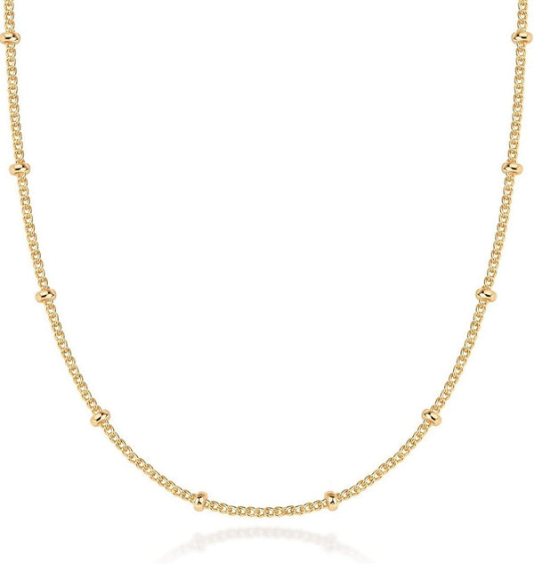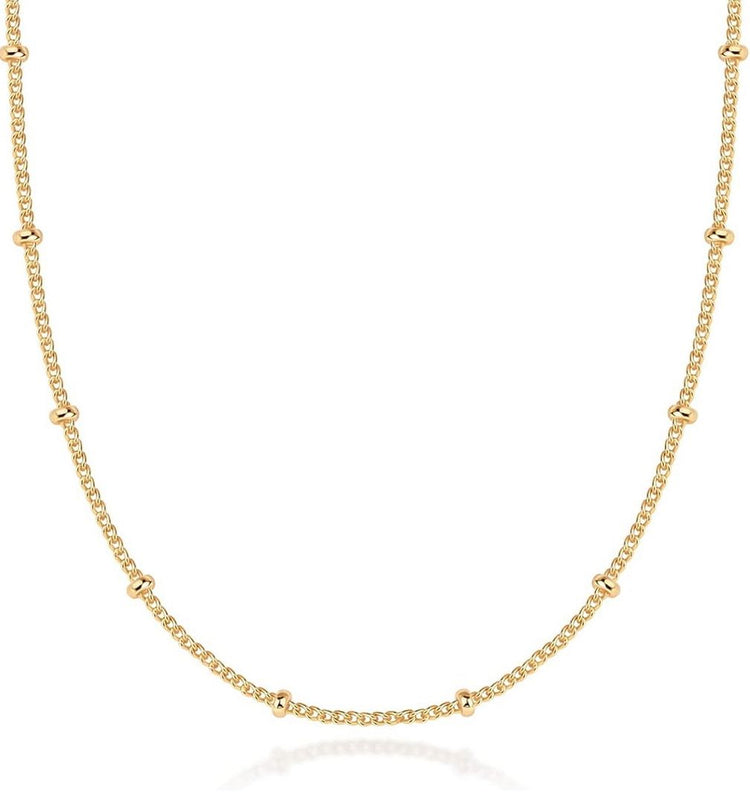 1pc 1/20 14K Gold Filled Satellite Bead Station Curb Link Chain Necklace, Thin Small, 1.9mm Beads, Non Tarnish, Length Selections: 16 inch/18 inch/20 inch