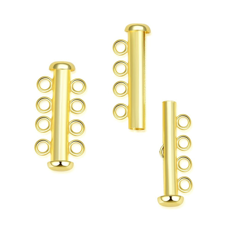- Color: 18k yellow gold; Long tube slide open clasp clock help design multiple strands bracelet, anklet, necklace, other layering jewelry easily and conveniently; this is slide open, Not magnetic, clasp, you need to either Add wire, string or jump rings to attached it to your jewelry or craft