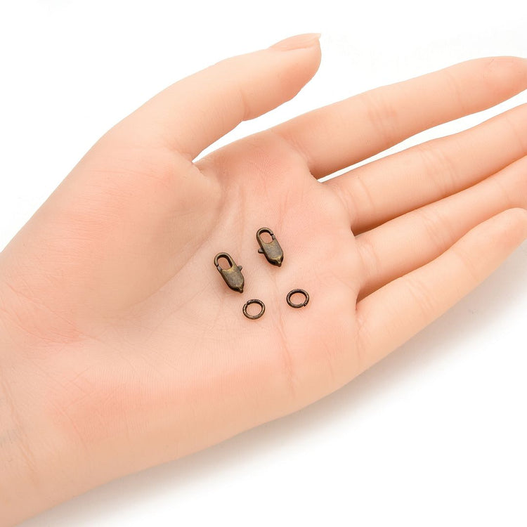 50pcs Rectangle Lobster Claw Clasp, 50pcs Open Jump Rings, Antique Bronze Plated Brass, Size Selections: 10mm/12mm