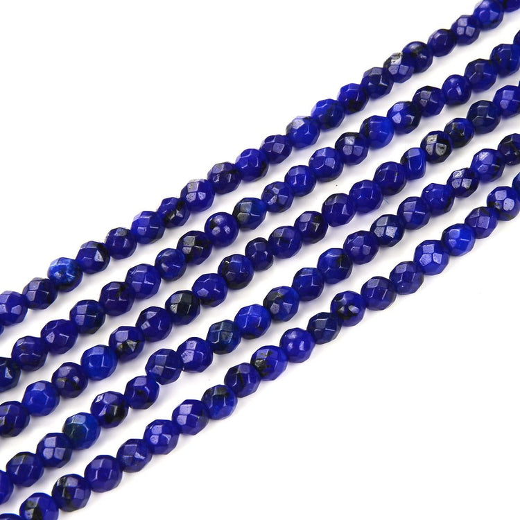 - (1 strand, about 14 inch per strand, 44 to 46pcs beads per strand), Stone/material: Natural Jade, sapphire blue color, faceted round beads, (dyed and color enhanced in high heat, the color will not come off)