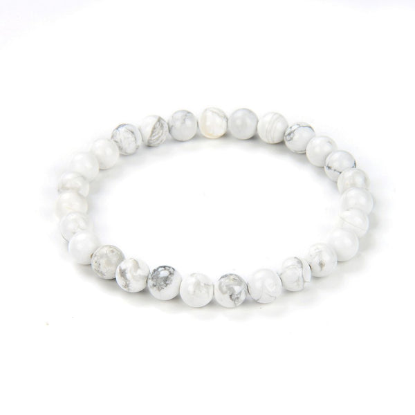 1 Strand Stretch Natural White Howlite Beaded Gemstone Bracelet, 6mm Beads, Length Selections: 7 inch/7.5 inch/8 inch