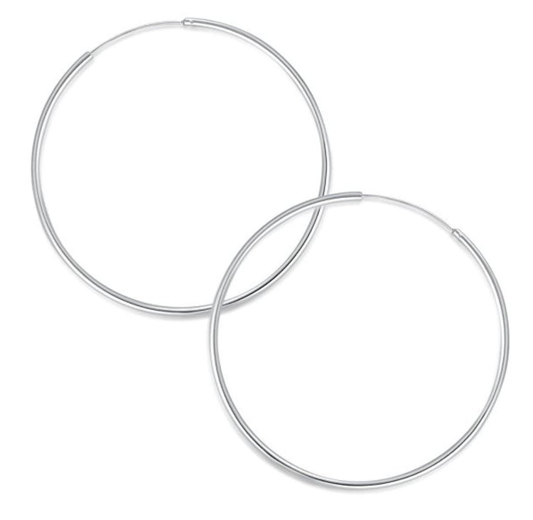 - Hoop diameter: about 60mm (2.4 inch) - extra large wide open hoops; Hoop wire diameter: about 1.2mm (0.05 inch) - thin, but standard wire size of ear hoop for comfortable wearing