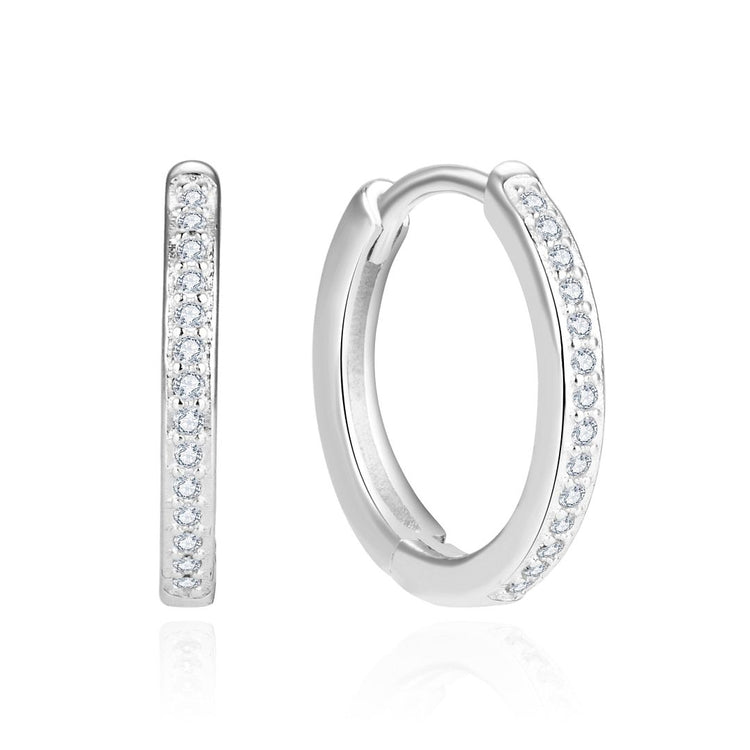 1 Pair Real 925 Sterling Silver Round Huggie Hoop Earrings, Pave Cubic Zirconia CZ, 15.5mm, SSE41-2