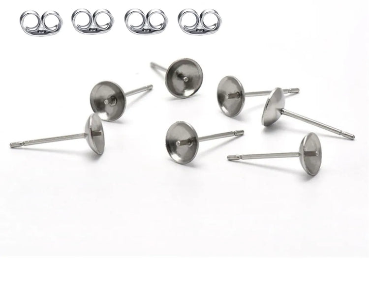 - (100pcs earring posts and 100pcs earnut backs) Material: 304 grade stainless steel which is safe, surgical grade, hypoallergenic, and tarnish resistant metal