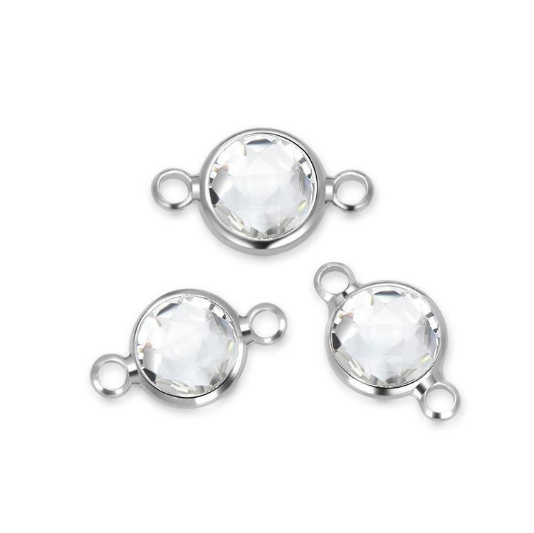 10pcs Grade A April Diamond Clear Birthstone Links, Sterling Silver Plated Brass, Size Selections: 6mm/8mm