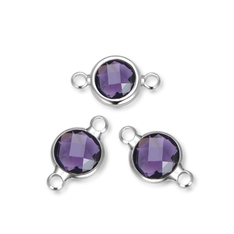 10pcs Grade A February Amethyst Purple Birthstone Links, Sterling Silver Plated Brass, Size Selections: 6mm/8mm