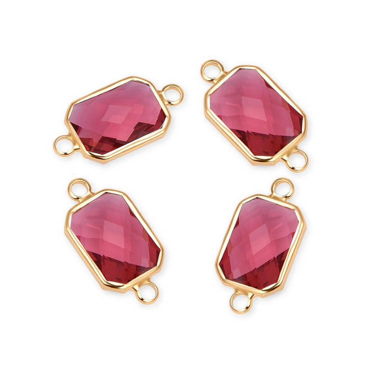 10pcs Grade A July Ruby Red Birthstone Rectangle Radiant Cut Links, 18K Yellow Gold Plated Brass, 14mm, CCP12-G7