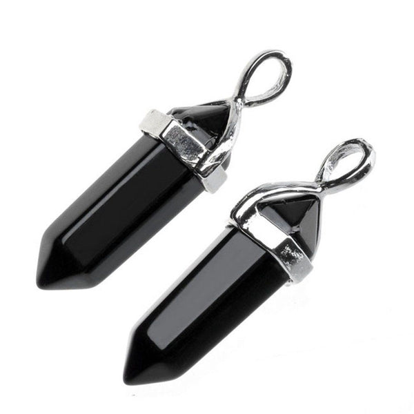 4pcs Natural Black Obsidian Gemstone Pendants, 42mm Loose Bullet Point Stone Drops, G2P-C15