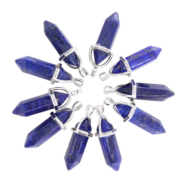4pcs Natural Blue Lapis Lazuli Gemstone Pendants, 42mm Loose Bullet Point Stone Drops, G2P-C2