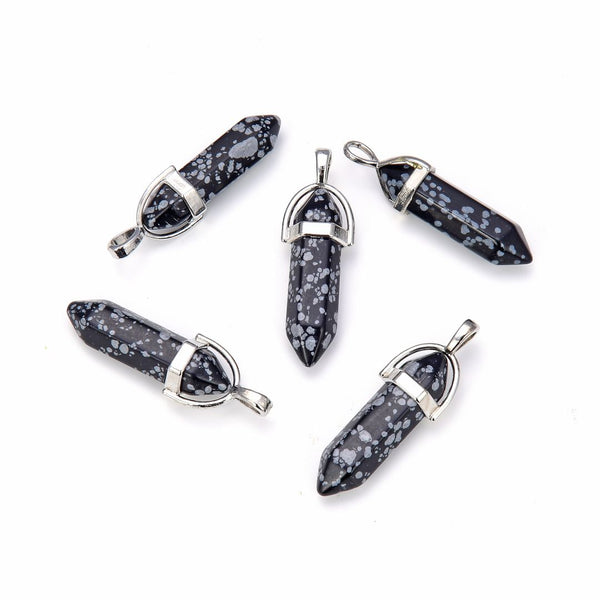 4pcs Natural Snowflake Obsidian Gemstone Pendants, 42mm Loose Bullet Point Stone Drops, G2P-C20