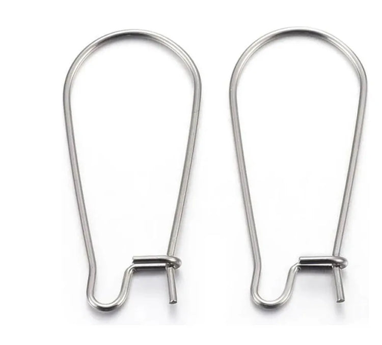 100pcs 316 Stainless Steel Kidney Earring Hooks – 0.8mm Wire (18mm/25mm/30mm/36mm/43mm)