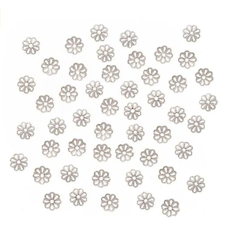 200pcs Filigree Flower Bead Caps, Silver Plated Bead End Caps, Size selections: 6mm/8mm/10mm