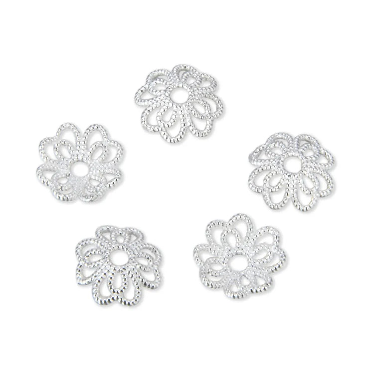 20pcs 925 Sterling Silver Textured Flower Round Bead Caps, Bead End Caps, 7.3mm, Hole ID 1mm, SS232-1