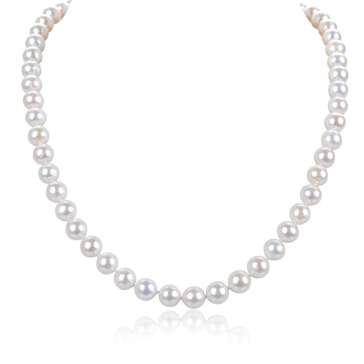 Natural Grade AAA+ Round White Cultured Freshwater Pearl Necklace, 8-9mm Pearl Strand, Length Selections: 16 inch/18 Inch