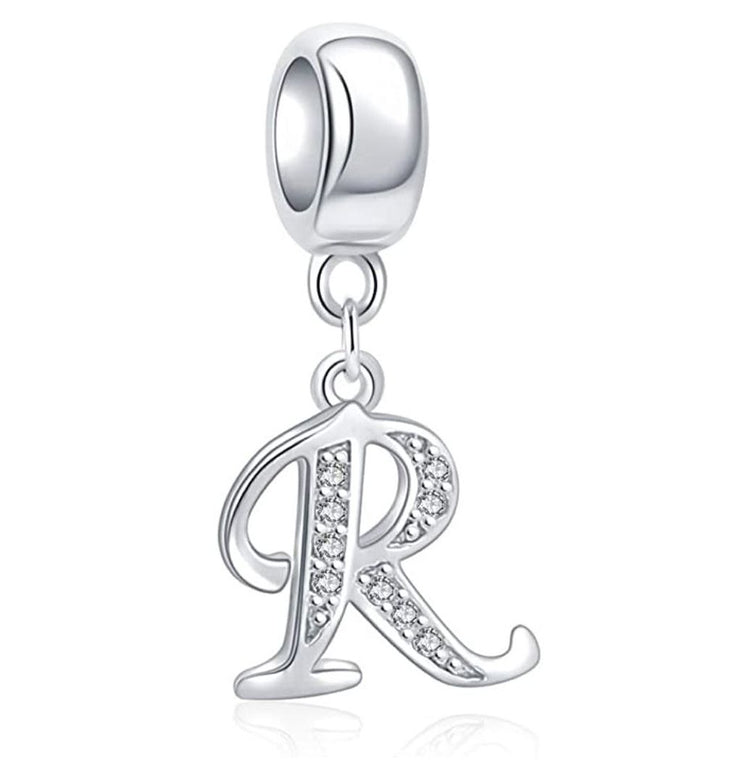 1pc 925 Sterling Silver Letter R, Alphabet Charm Pendant Drop, 18mm Long, Hole ID 4.5mm, EC3-A18