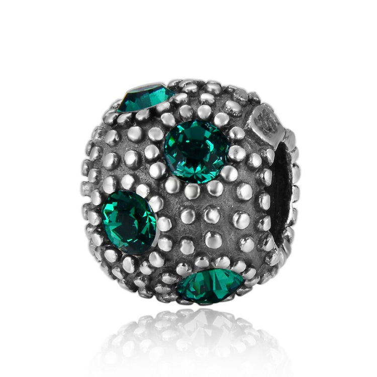 1pc 925 Sterling Silver May Birthstone Bead Charm, Green Emerald Cubic Zirconia CZ, 10.3x9mm, Hole ID 4.5mm, EC1-M5