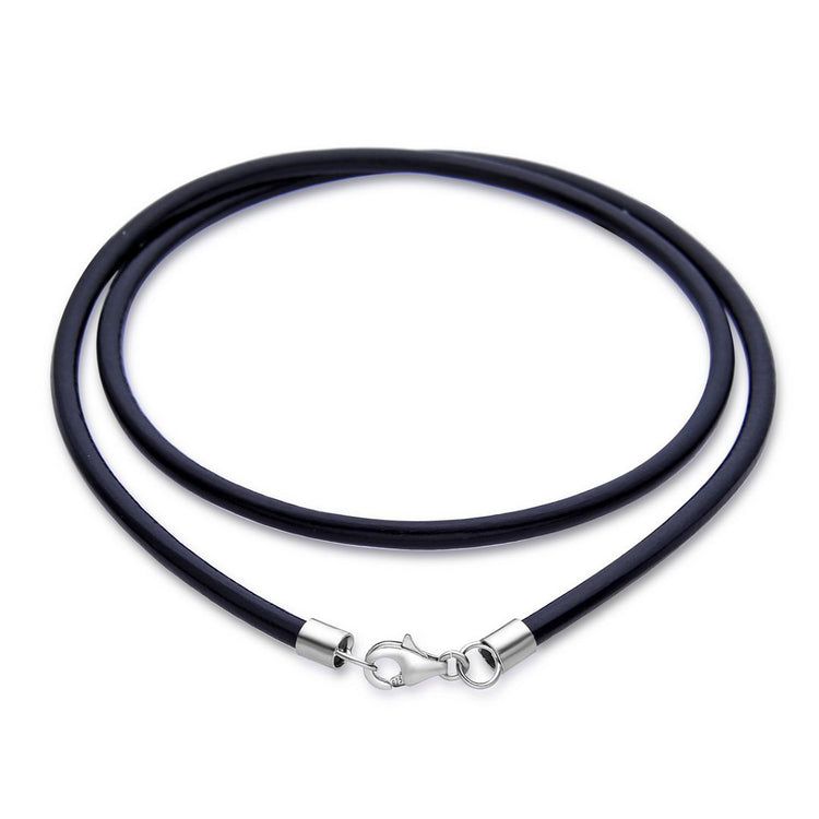 1pc Black Leather Cord Necklace, Sterling Silver Clasp, 3mm Diameter, Length Selections: 16 inch/18 inch/20 inch/22 inch