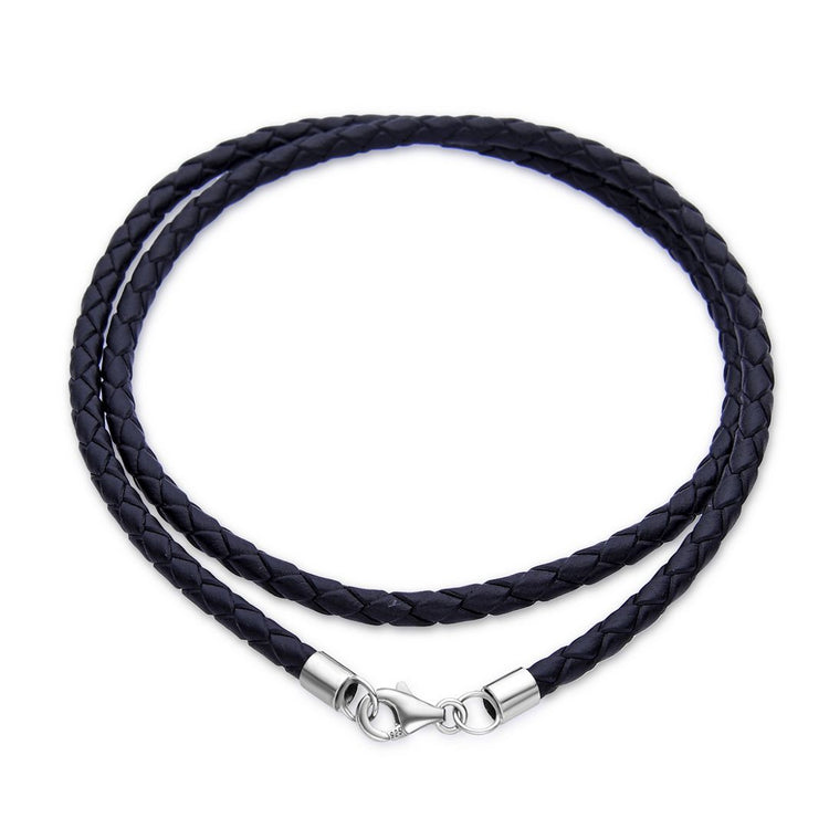 1pc Braided Black Leather Cord Necklace, Sterling Silver Clasp, 3mm Diameter, Length Selections: 16 inch/18 inch