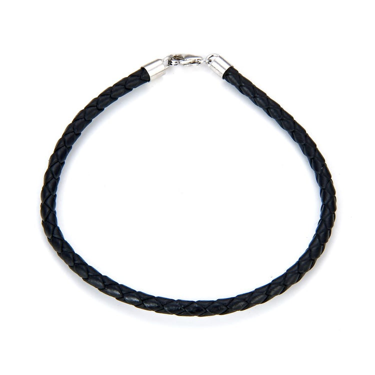 1pc Braided Black Leather Cord Necklace, Sterling Silver Clasp, 3mm Diameter, Length Selections: 7 inch/7.5 inch/8 inch
