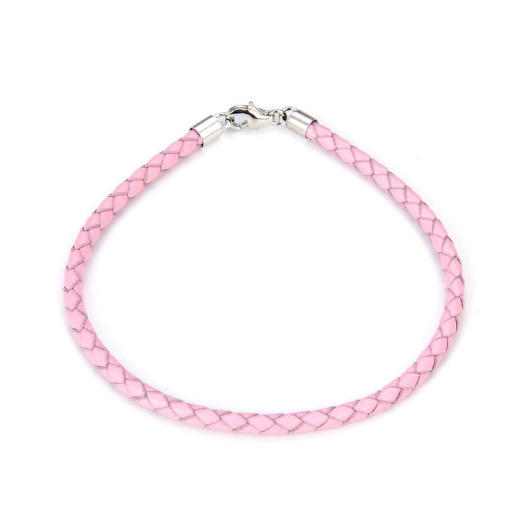 1pc Braided Pink Leather Cord Necklace, Sterling Silver Clasp, 3mm Diameter, Length Selections: 7 inch/7.5 inch/8 inch
