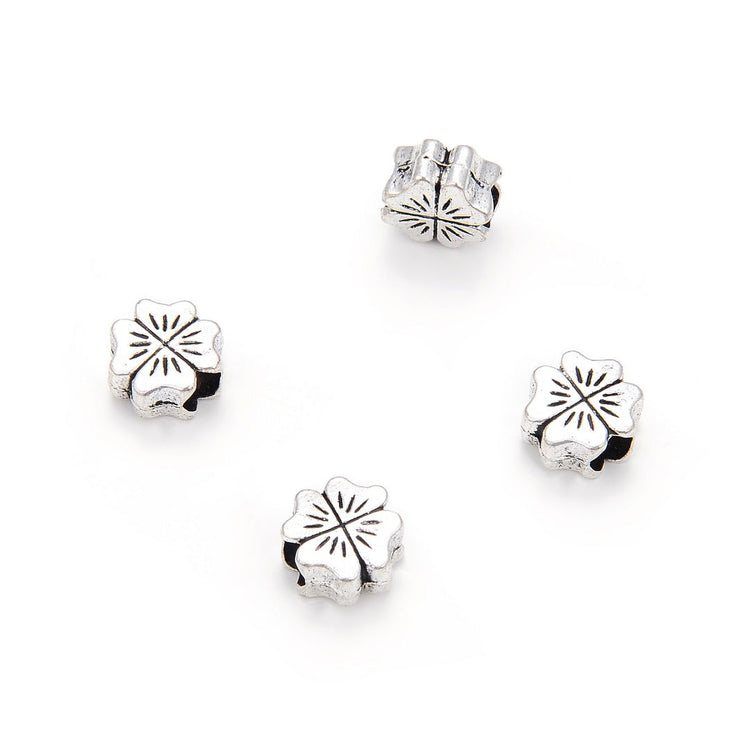 20pcs Four-Leaf Clover Flower Symbol of Good Luck Large Hole Beads, Hole ID 4.5mm, Antique Silver, Zinc Alloy Metal, MEC-E1