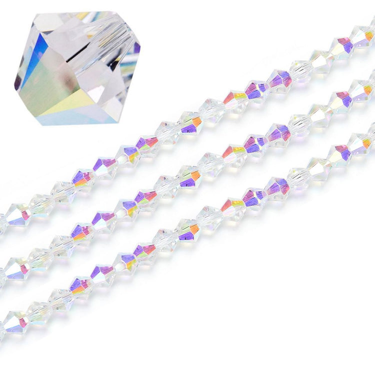 500pcs Creative Club Faceted Bicone Crystal Glass Beads, Crystal AB, 4mm (0.16 Inch) Small Tiny, Hole ID 0.9mm, CCB402