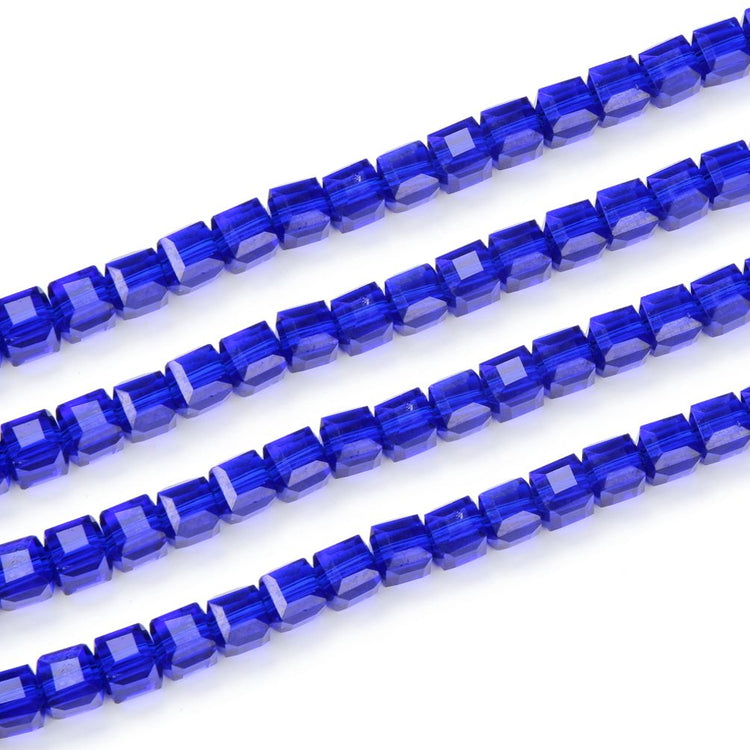 100pcs Creative Club Faceted Cube Crystal Glass Beads, Cobalt Blue, 6mm, Hole ID 1mm, CCC625