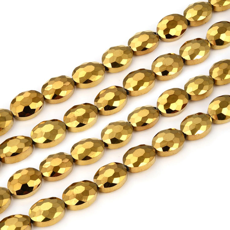 50pcs Creative Club Faceted Flat Oval Crystal Beads, Gold Aurum, 16x12mm/Large, Hole ID 1.1mm, CCO-33