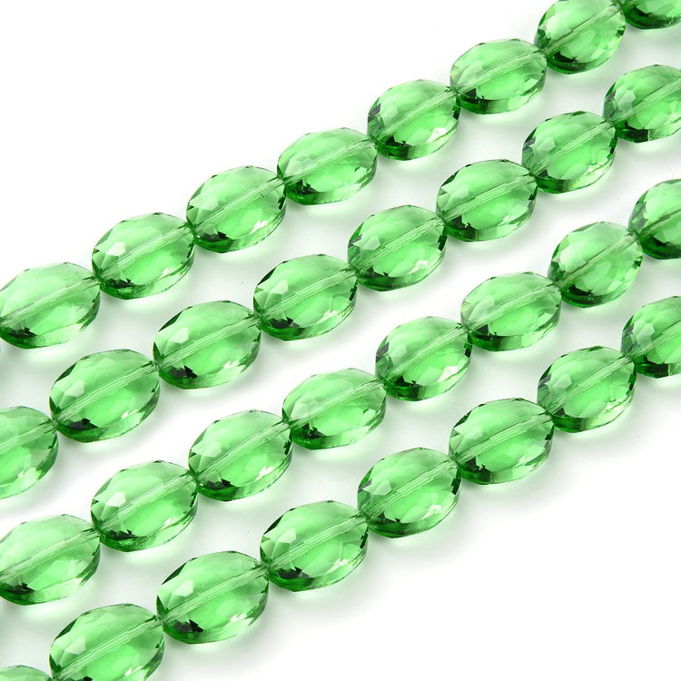 50pcs Creative Club Faceted Flat Oval Crystal Beads, Peridot Green, 16x12mm/Large, Hole ID 1.1mm, CCO-16