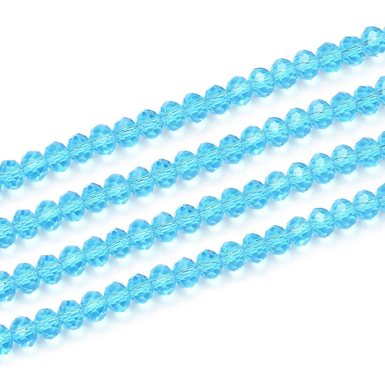 500pcs Creative Club Faceted Rondelle Crystal Glass Beads, Aquamarine Blue, 6x4mm, Hole ID 1mm, CCR610