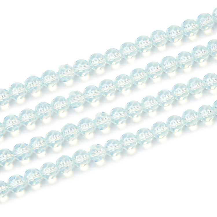 200pcs Creative Club Faceted Round Crystal Glass Beads, White Opal, 6mm (0.24 inch), Hole ID 1mm, CC2R634