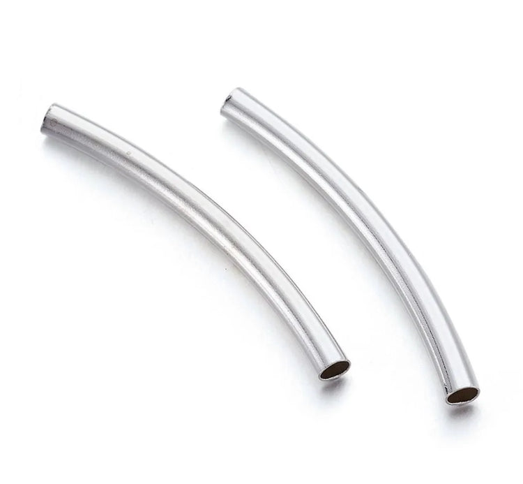 100pcs Curved Noodle Tube Beads, Sterling Silver Plated Brass, Hole ID 1.5mm, Size Selections: 25mm/30mm/35mm/40mm/50mm