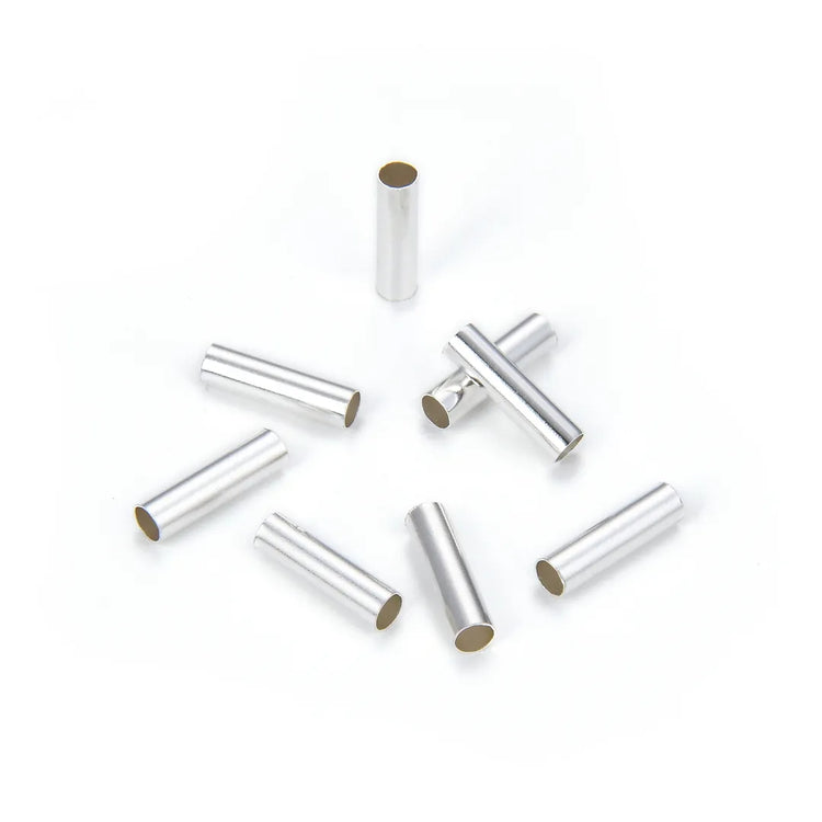 100pcs Smooth 10mm Tube Beads, Sterling Silver Plated Brass, Hole ID Selections: 0.5mm/1.5mm/2.4mm