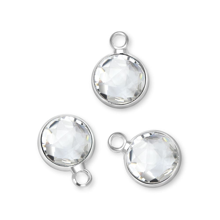 10pcs Grade A April Diamond Clear Birthstone Charm Drop, Sterling Silver Plated Brass, Size Selections: 6mm/8mm/10mm
