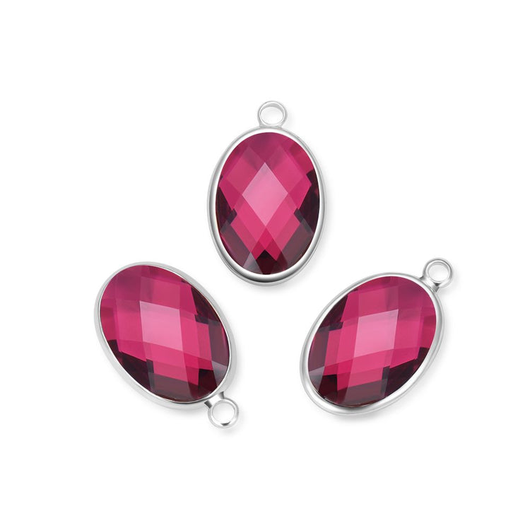 10pcs Grade A July Ruby Red Oval Birthstone Charm Drops, Sterling Silver Plated Brass, 18x13mm, CCP6-S7