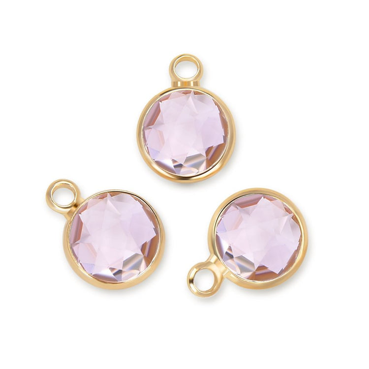 10pcs Grade A October Pink Birthstone Charm Drops, 18K Yellow Gold Plated Brass, 6mm Small, CCP2-G10