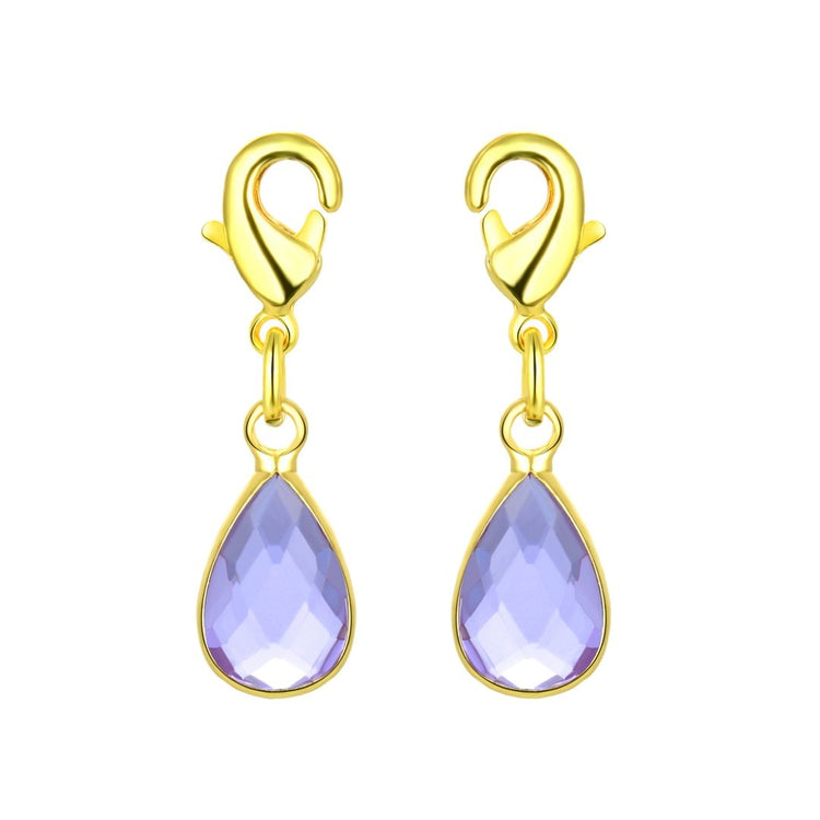 2pcs Clip On Dangle June Alexandrite Light Violet Birthstone Charm Drops, Tarnish Resistant, 18K Yellow Gold Plated Lobster Clasp, BL8-6