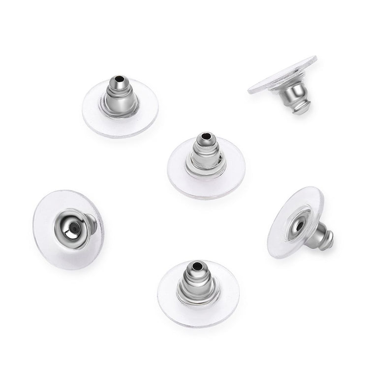 100pcs Earring Backs, Clear Plastic Pad Earnut Replacement, Sterling Silver Plated Brass, 10mm, CF230-1