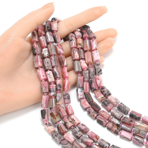 - (1 strand, about 15 inch, 27 to 29pcs beads); Stone/Material: Pink Argentina Rhodonite (natural, no dyed, no color enhanced, there may be natural inclusion or cracks in the beads); beautiful smooth faceted tube gemstone beads, each facets may not be precisely the same due to the hardness of the stone
