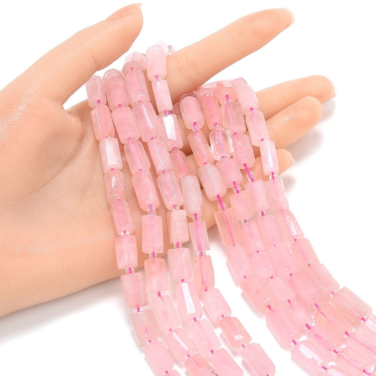 - (1 strand, about 15 inch, 27 to 29pcs beads); Stone/Material: Rose Quartz Pink Crystal (natural, no dyed, no color enhanced, there may be natural inclusion or cracks in the beads); beautiful smooth faceted tube gemstone beads, each facets may not be precisely the same due to the hardness of the stone