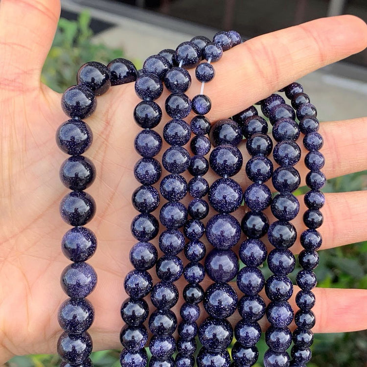 Blue Goldstone Sandstone Gemstone Round Beads, 1 Strand/15 Inch, Size Selections: 4mm/6mm/8mm/10mm