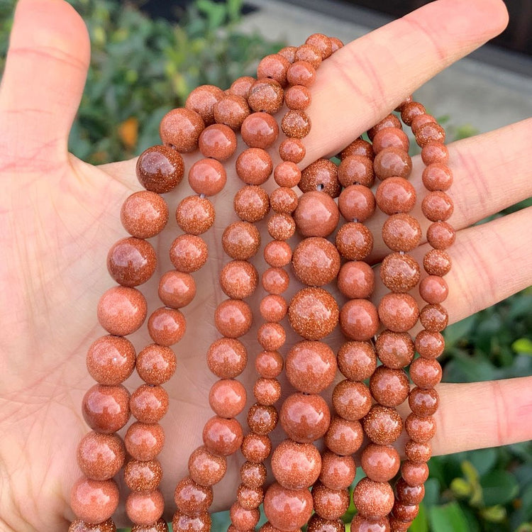 Brown Goldstone Sandstone Gemstone Round Beads, 1 Strand/15 Inch, Size Selections: 4mm/6mm/8mm/10mm