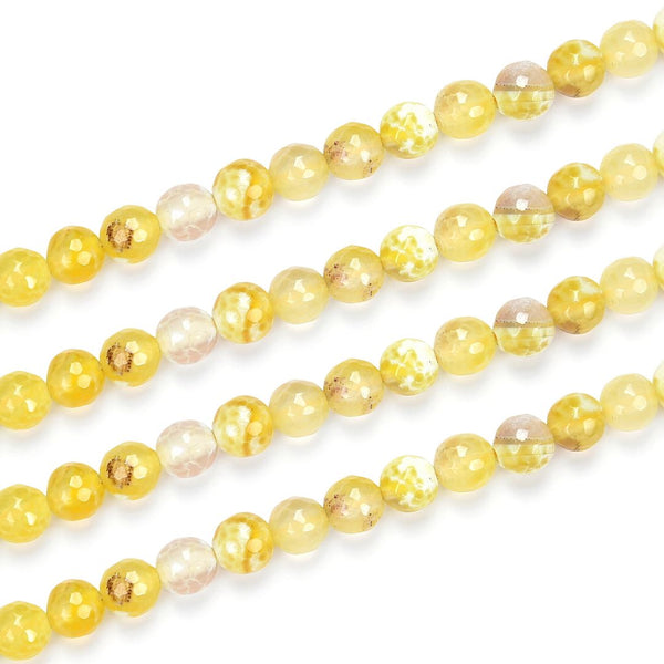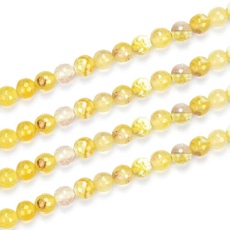Natural Faceted Yellow Fire Agate Gemstone Round Beads, 15 Inch/1 Strand, Size Selections: 4mm/6mm/8mm/10mm
